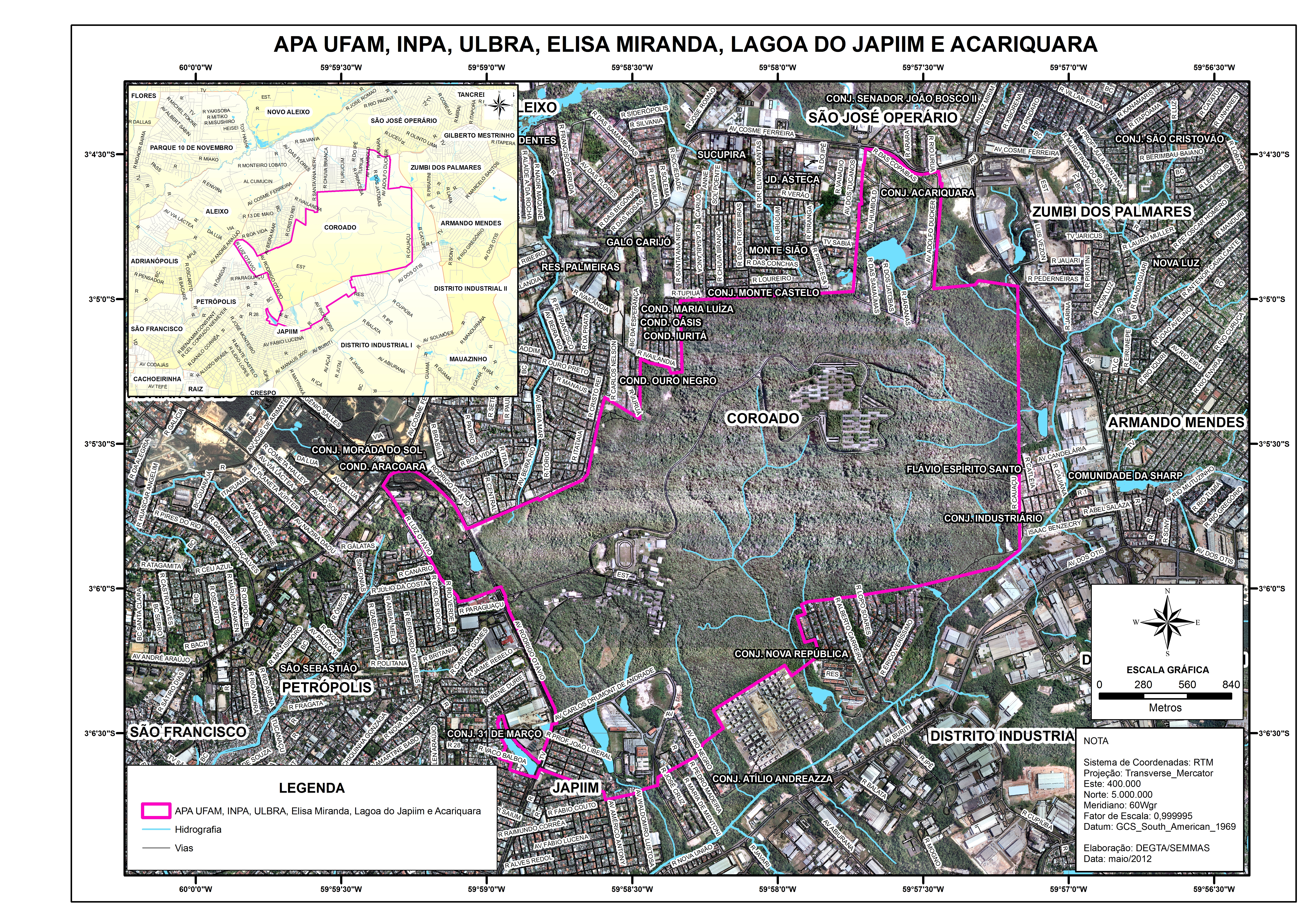 MANAUS. Decreto nº 1503 de 27/03/2012. Criação da Área de Proteção Ambiental APA UFAM, INPA, ULBRA, LAGOA DO JAPIIM, ELIZA MIRANDA e ACARIQUARA. Disponível em http://semmas.manaus.am.gov.br/wp-content/uploads/2010/10/Decreto-1.503-de-27-de-mar%C3%A7o-de-2012.pdf. Acesso dia 14 de janeiro de 2017.